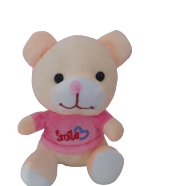 Spread joy with this soft, cream-colored teddy bear wearing a vibrant pink plush sweater featuring an embroidered “Smile” logo. Perfect for gifting to kids or as a cheerful desk companion