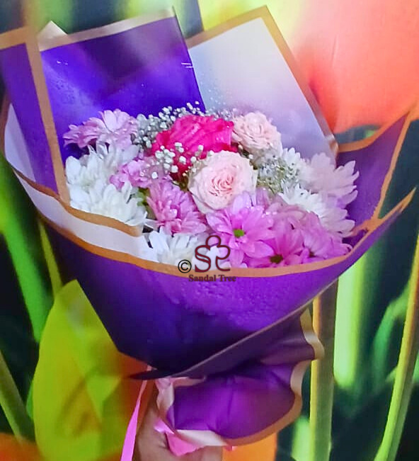 A vibrant and eye-catching bouquet, elegantly wrapped in rich purple paper. Perfect for anniversaries, birthdays, or just to say “I love you.”