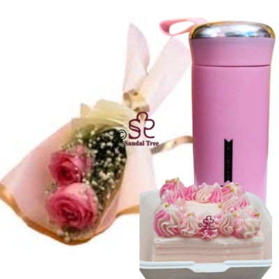 A delicate basket of blush carnations paired with our popular cream-toned ribbed hydration bottle.